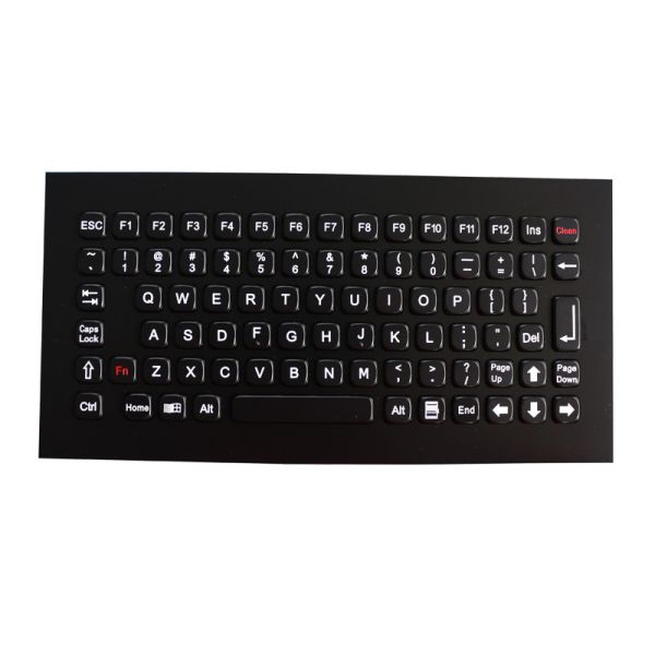 83 keys compact format IP67 dynamic vandal proof stainless steel industrial keyboard,industrial PCB with carbon-on-gold key switch technology with long stroke (2.0mm) with extremely good tactile feeling for fast and accurate data input without any noise, function keys F1, F2, F3…F10, F11, F12 are on the top line for easy operation, stainless steel top plate with threaded bolts for top panel mounting solution. High quality durable black titanium electroplated on the top stainless steel plate and all keys included. Which is good for outdoor application with direct rain and very harsh environments with humidity, much dynamic water, oil, dirt, salt mist etc.