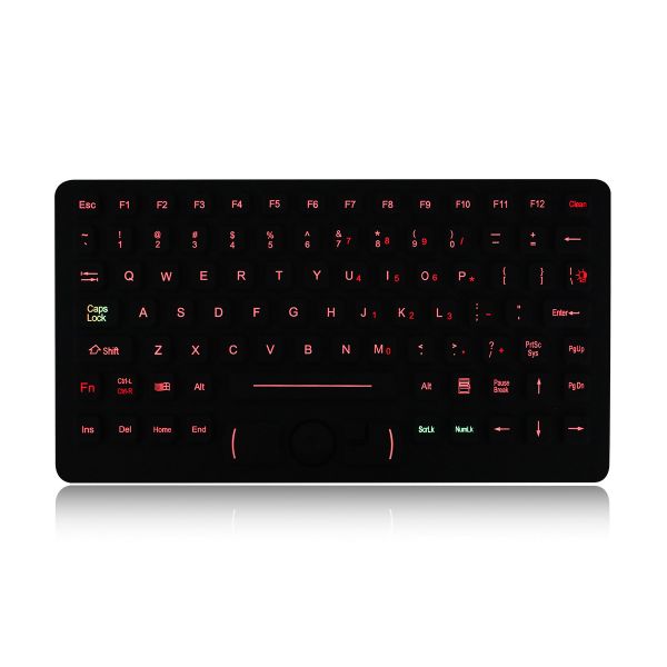 DESCRIPTION: 90 keys IP65 dynamic sealed and ruggedized silicone rubber military keyboard with full keyboard functionalities with a Force Sensing Resistor pointing device for fast and accurate cursor position, 12 FN keys (F1, F2...F11, F12) are on top line for easy operation, with military PCB with carbon-on-gold key switch technology with long stroke (1.50mm) with extremely good tactile feeling for fast and accurate data input without any noise, with durable coating & antimicrobial keyboard surface withstand to most chemicals and liquids under harsh environment, FN + CLEAN combination key to lock/disable the keyboard for easy cleaning without needing to take away the keyboard from PC, top panel mounting solution,with backlight included(red/white optional). EMC approval ensures that this model can coexist with other sensitive equipment without causing interference. Military level,designed to Meet MIL-STD-461G and MIL-STD-810F.